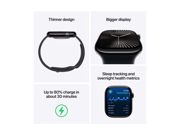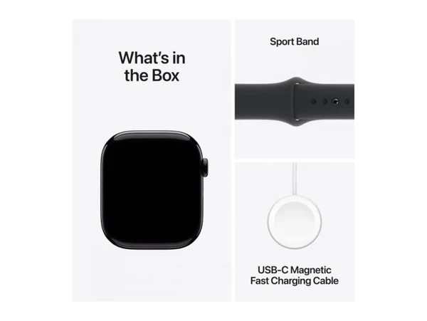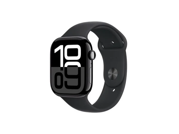ساعة ابل الجيل العاشر جي بي اس + خلوي هيكل من الألومنيوم باللون الأسود مقاس 42 ملم مع حزام رياضي أسود - مقاس سمول/ميديم