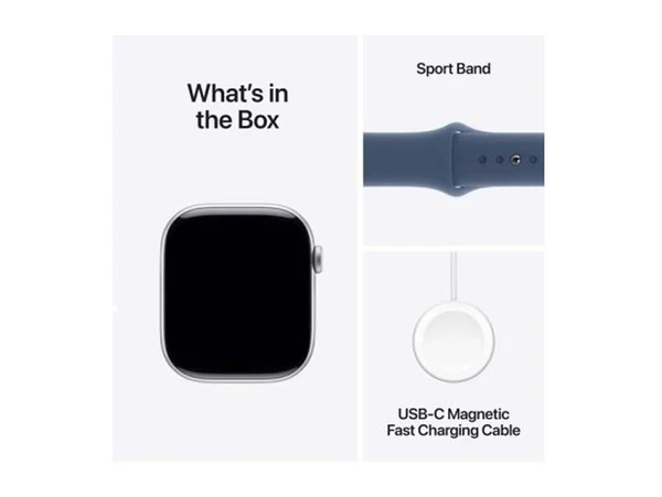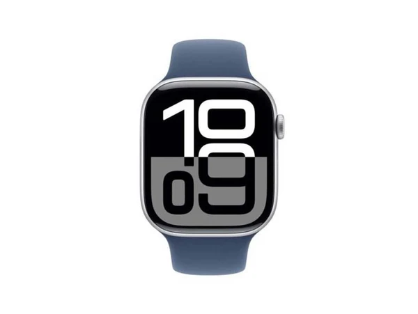 ابل ساعة الجيل العاشر جي بي إس - هيكل من الألومنيوم باللون الفضي - مقاس 42 ملم مع حزام رياضي من الدنيم - مقاس لارج/ميديم