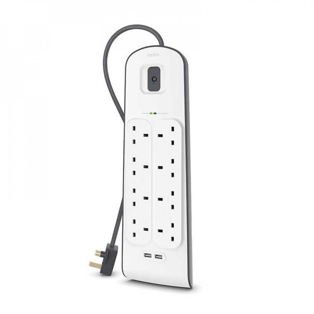 يتوفر عرض توصيلة بيلكن 8 مداخل + 2 USB مع توصيلة جدارية من هوم بيست