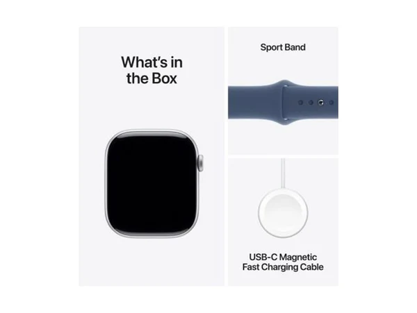 ساعة ابل الجيل العاشر جي بي اس - 46 ملم - هيكل من الالمنيوم الفضي وسوار رياضي من الدنيم - مقاس سمول/ميديم